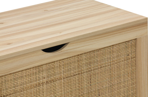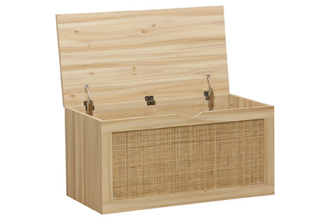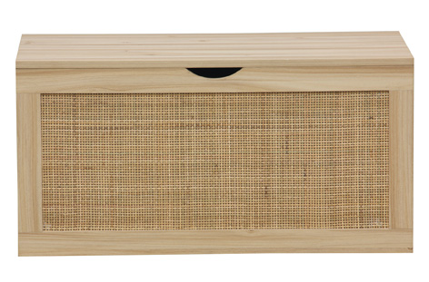Baúl almacenaje Apertura superior Papel laminado pino Frente decorativo en rattán Medidas: 80 x 40 x 40 cm – Unidad venta : caja 1 Ud – Volumen : 0 04452 M 3 x Ud Entradas previstas : Colores disponibles : Pino / Rattan En stock : 141 Uds En stock : 141 Uds