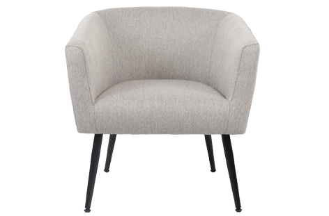 Butaca circular tapizada Patas metálicas en color negro Tejido gris melange Medidas: 66 x 64 x 70 cm – Unidad venta : caja 1 Ud – Volumen : 0 175 M 3 x Ud Entradas previstas : Colores disponibles : Linen blanco En stock : 19 Uds Gris melange En stock : 65 Uds En stock : 19 Uds