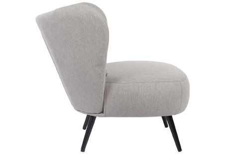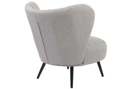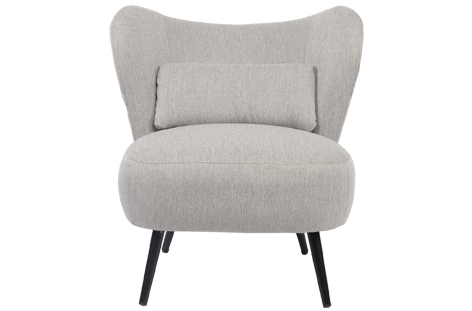 Butaca tapizada Respaldo circular Cojín lumbar incluido Tejido gris melange Patas metálicas en color negro Medidas: 73,5 x 78 x 76 cm – Unidad venta : caja 1 Ud – Volumen : 0 225 M 3 x Ud Entradas previstas : Colores disponibles : Linen blanco En stock : 3 Uds Gris melange En stock : 27 Uds En stock : 3 Uds