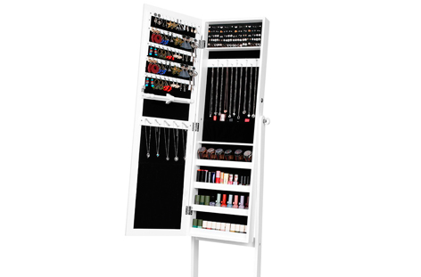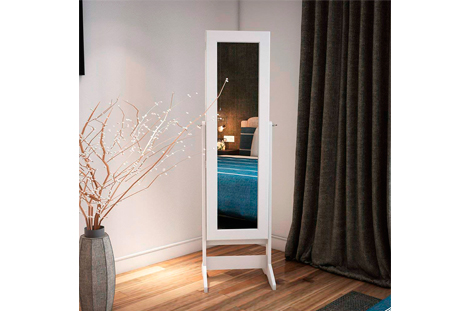 Espejo joyero Cierre con llave Ajuste de inclinación Gran capacidad de almacenaje Color blanco Medidas: 36 x 40 x 155 cm – Unidad venta : caja 1 Ud – Volumen : 0 084 M 3 x Ud Entradas previstas : Colores disponibles : Blanco En stock : 112 Uds En stock : 112 Uds