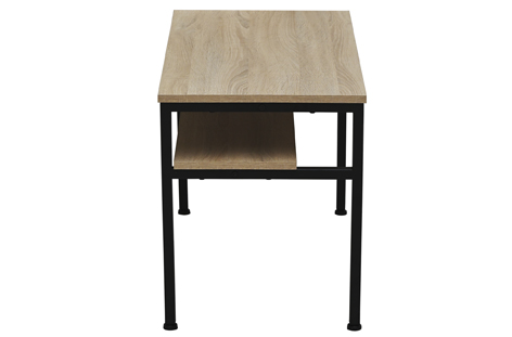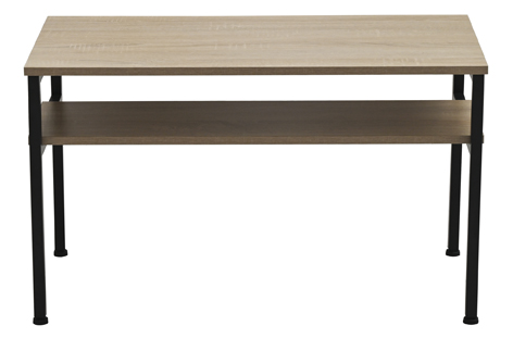 Mesa centro con estante inferior Tapa y estante en melamina color roble Estructura metálica color negro Medidas : 80 x 40 x 48 cm – Unidad venta : caja 1 Ud – Volumen : 0 027 M 3 x Ud Entradas previstas : 94 Ud(s) – 08/03 Colores disponibles : Oak / Negro 94 Ud(s) – 08/03 94 Ud(s) – 08/03