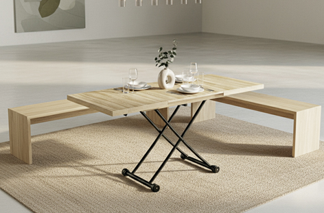 MESA CENTRO ELEVABLE Y EXTENSIBLE 100 – 130 – 160 CM TAYLOR OAK / NEGRO