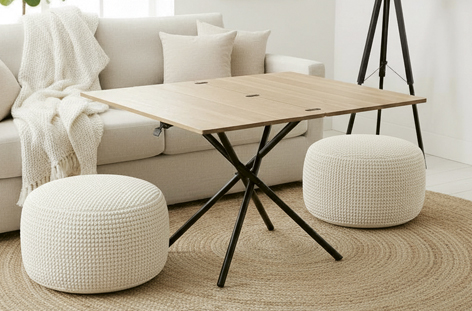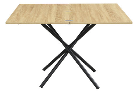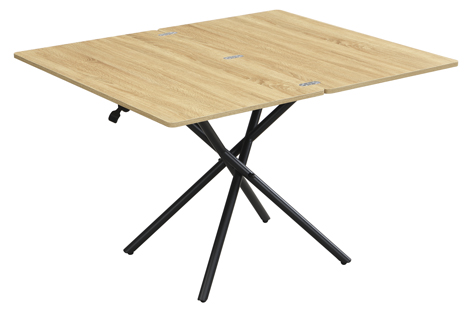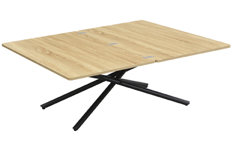 Mesa centro elevable y extensible Tapa en melamina Extensible tipo libro a 114 x 100 cm Elevacíon a gas Accionamiento mediante tirador Estructura metálica color negro Medidas : 100 x 57 – 114 x 38 – 76,5 cm – Unidad venta : caja 1 Ud – Volumen : 0 131 M 3 x Ud Entradas previstas : 191 Ud(s) – 29/03 Colores disponibles : Oak / Negro 191 Ud(s) – 29/03 191 Ud(s) – 29/03