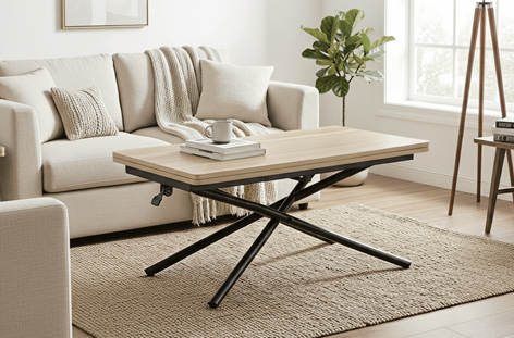 MESA CENTRO ELEVABLE Y EXTENSIBLE KATY 100 x 57 – 114 CM OAK / NEGRO