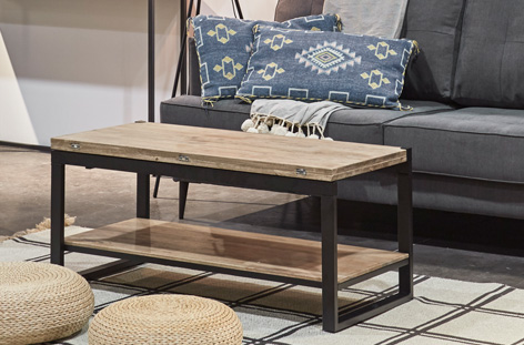Mesa de centro elevable y extensible Tapa en madera de roble Estructura metálica color negro Medidas: 100 x 45 – 90 x 47 cm – Unidad venta : caja 1 Ud – Volumen : 0 073 M 3 x Ud Entradas previstas : 1 Ud(s) – 15/03 20 Ud(s) – 22/03 Colores disponibles : Roble nordish / negro En stock : 64 Uds Roble nordish / blanco En stock : 22 Uds Roble honey / negro En stock : 15 Uds En stock : 64 Uds