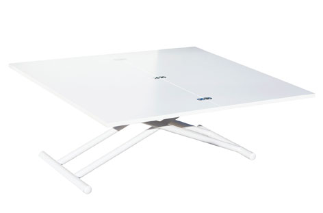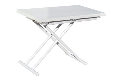Mesa centro elevable y extensible Up – down Elevable y convertible en mesa de comedor Elevación mediante pulsador Medida cerrada 100 x 50 x 49 – 76 cm Medida abierta 100 x 100 x 49 – 76 cm Tapa en color blanco Estructura metálica color blanco – Unidad venta : caja 1 Ud – Volumen : 0 146 M 3 x Ud Entradas previstas : Colores disponibles : Nogal / negro 30 Ud(s) – 15/03 Roble nordish / blanco En stock : 18 Uds Blanco En stock : 19 Uds 30 Ud(s) – 15/03
