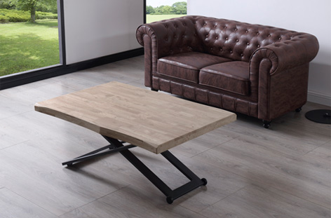 MESA CENTRO ELEVABLE ZOE 120 x 80 CM ROBLE HONEY / NEGRO TAPA CON FORMA