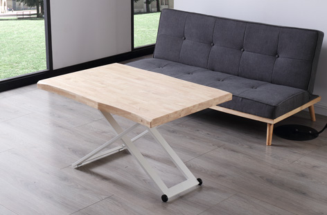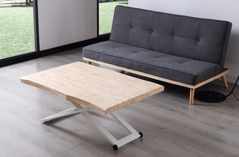 MESA CENTRO ELEVABLE ZOE 120 x 80 CM ROBLE NORDISH / BLANCO TAPA CON FORMA