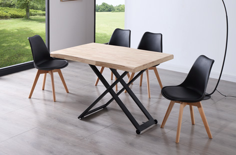 MESA CENTRO ELEVABLE ZOE 120 x 80 CM ROBLE NORDISH / NEGRO TAPA CON FORMA