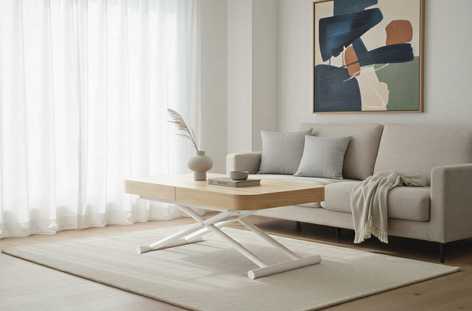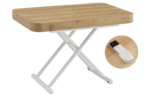 MESA CENTRO EXTENSIBLE 120 – 160 – 200 CM CON ELEVACION ELECTRICA TURIN OAK / BLANCO