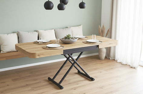 MESA CENTRO EXTENSIBLE 120 – 160 – 200 CM CON ELEVACION ELECTRICA TURIN OAK / NEGRO