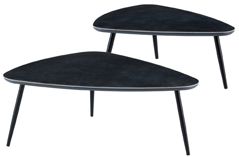 Juego de 2 mesas de centro nido Tapas con acabado superior cerámico en color negro Patas metálicas en color negro Medidas : ( an x prof x al ) : 97 x 79 x 35 cm / 74 x 50 x 29 cm – Unidad venta : caja 1 Ud – Volumen : 0 115 M 3 x Ud Entradas previstas : 30 Ud(s) – 30/04 Colores disponibles : Ceramic blanco / negro 16 Ud(s) – 30/04 Ceramic negro / negro 30 Ud(s) – 30/04 16 Ud(s) – 30/04
