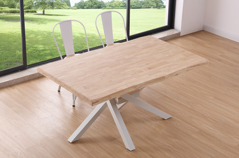 Tapa con formas en madera de roble Patas metálicas color blanco Medidas: 150 x 90 x 76 cm – Unidad venta : caja 1 Ud – Volumen : 0 154 M 3 x Ud Entradas previstas : Colores disponibles : Tapa con forma Roble nordish / blanco En stock : 9 Uds En stock : 9 Uds