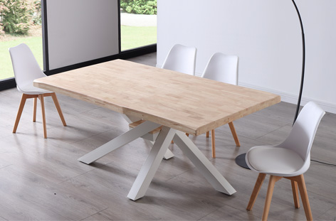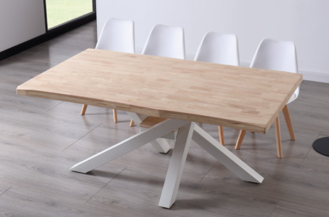 Tapa con formas en madera de roble Patas metálicas color blanco Medidas: 180 x 100 x 76 cm – Unidad venta : caja 1 Ud – Volumen : 0 199 M 3 x Ud Entradas previstas : Colores disponibles : Tapa con forma Roble nordish / negro En stock : 12 Uds Tapa con forma Roble nordish / blanco En stock : 23 Uds Tapa con forma Roble honey / negro En stock : 3 Uds En stock : 12 Uds