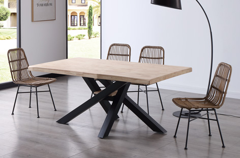 MESA COMEDOR FIJA XENA 180 x 100 CM ROBLE NORDISH / NEGRO TAPA CON FORMA