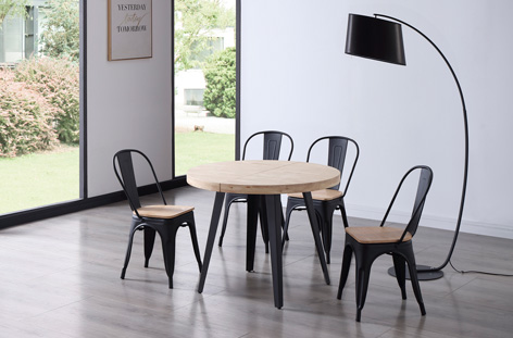 MESA COMEDOR REDONDA EXTENSIBLE BERG 100 – 140 – 180 CM ROBLE NORDISH / NEGRO