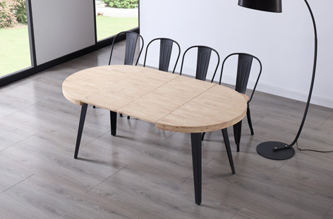 Tapa extensible en madera de roble Grueso exterior tapa 54 mm Patas metálicas color negro Extensible a 140 o 180 cm Medidas: 100 – 140 – 180 x 100 x 76 cm – Unidad venta : caja 1 Ud – Volumen : 0 214 M 3 x Ud Entradas previstas : 40 Ud(s) – 15/03 40 Ud(s) – 05/04 Colores disponibles : Roble nordish / negro En stock : 65 Uds Roble nordish / blanco En stock : 60 Uds Roble honey / negro 145 Ud(s) – 15/03 En stock : 65 Uds