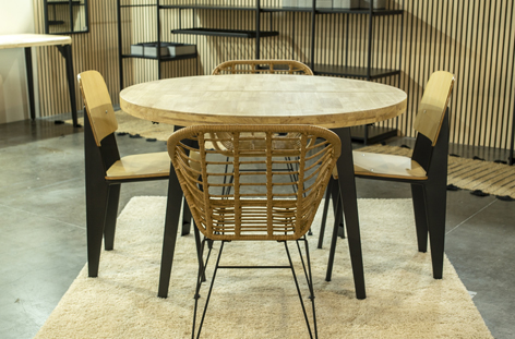 MESA COMEDOR REDONDA EXTENSIBLE BERG 120 – 160 – 200 CM ROBLE NORDISH / NEGRO