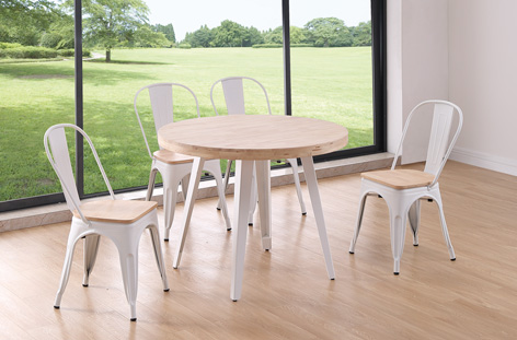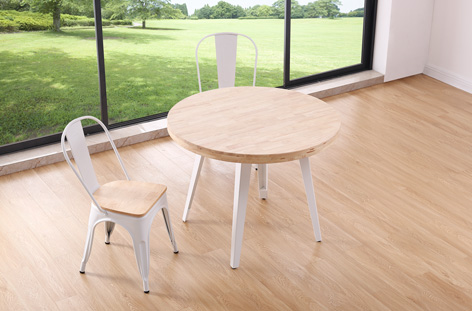 Tapa en madera de roble Grueso exterior tapa 54 mm Patas metálicas color blanco Medidas: 100 x 100 x 76 cm – Unidad venta : caja 1 Ud – Volumen : 0 106 M 3 x Ud Entradas previstas : Colores disponibles : Roble nordish / negro En stock : 11 Uds Roble nordish / blanco En stock : 2 Uds Roble honey / negro En stock : 43 Uds En stock : 11 Uds