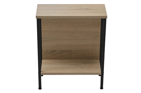 Mesa rincón / sofá con estante inferior Tapa y estante en melamina color roble Estructura metálica color negro Medidas : 40 x 18 x 48 cm – Unidad venta : caja 1 Ud – Volumen : 0 01 M 3 x Ud Entradas previstas : 187 Ud(s) – 08/03 Colores disponibles : Oak / Negro 187 Ud(s) – 08/03 187 Ud(s) – 08/03
