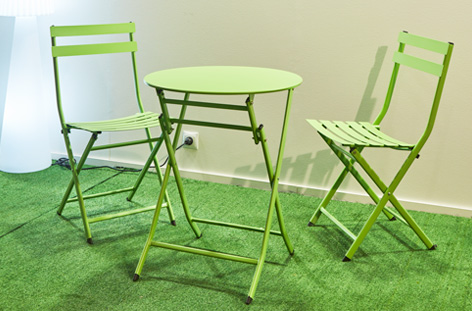 Set cafe compuesto por una mesa redonda y dos sillas Uso exterior / interior Mesa y sillas plegables Conjunto completo fabricado en metal Color pistacho Medidas mesa: 60 x 60 x 71,5 cm Medidas sillas: 38 x 42 x 80 cm – Unidad venta : caja 1 Ud – Volumen : 0 185 M 3 x Ud Entradas previstas : Colores disponibles : Pistacho En stock : 15 Uds En stock : 15 Uds