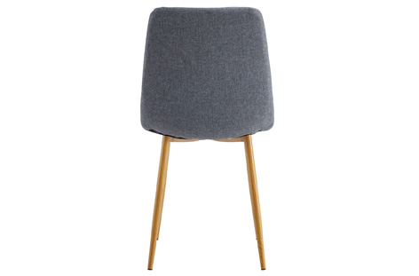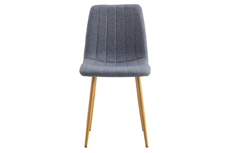 Silla de comedor tapizada Tejido gris Patas metálicas imitación madera oak Costuras decorativas Medidas: 44 x 55 x 87 cm – Unidad venta : caja 4 Uds – Volumen : 0 056 M 3 x Ud Entradas previstas : 76 Ud(s) – 08/03 80 Ud(s) – 01/05 Colores disponibles : Tejido gris / oak 76 Ud(s) – 08/03 Tejido beige / oak 36 Ud(s) – 08/03 76 Ud(s) – 08/03