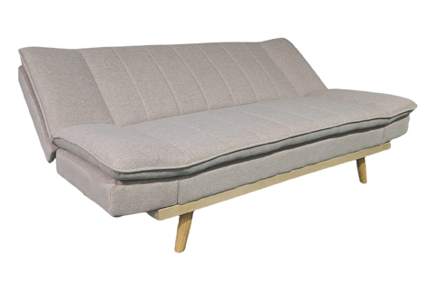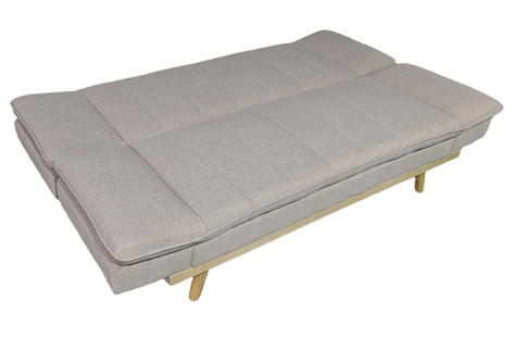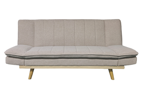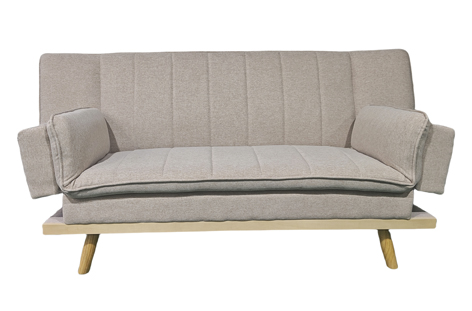 Sofá cama tapizado Mecanismo clic clac con apertura tipo libro Apoyabrazos reclinables y regulables en altura Acolchado mullido soft confort Costuras decorativas lineas verticales Tejido beige Base inferior y patas en madera maciza color natural Medidas: 189 x 89 x 91 cm, cama 114 x 189 cm – Unidad venta : caja 1 Ud – Volumen : 0 665 M 3 x Ud Entradas previstas : Colores disponibles : Tejido gris En stock : 18 Uds Tejido beige En stock : 19 Uds En stock : 18 Uds