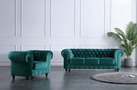 SOFÁ CHESTERFIELD 3 PLAZAS VELVET VERDE