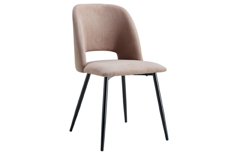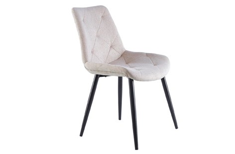 Silla de comedor tapizada Tejido beige Patas metálicas color negro Medidas: 58 x 50 x 86 cm – Unidad venta :