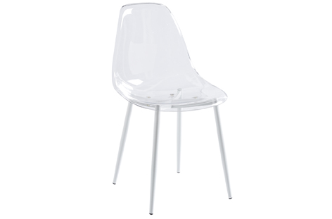 Carcasa de asiento y respaldo en PET transparente Estructura de patas metálica en color blanco Medidas: 46,5 x 50 x