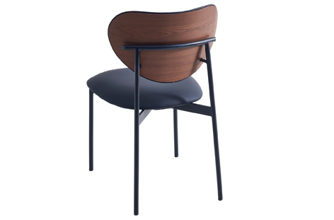 Silla de comedor tapizada Trasera respaldo en madera vista Estructura metálica soldada color negro Tejido símil piel negro Medidas: 52