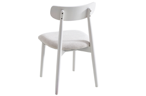 Silla de comedor tapizada Estructura fija ensamblada en madera maciza color blanco Tejido beige Medidas: 48 x 45 x 79