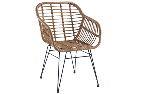 Silla comedor en rattan sintético marrón Patas metálicas color negro Medidas: 44 x 47 x 84 cm – Unidad venta :